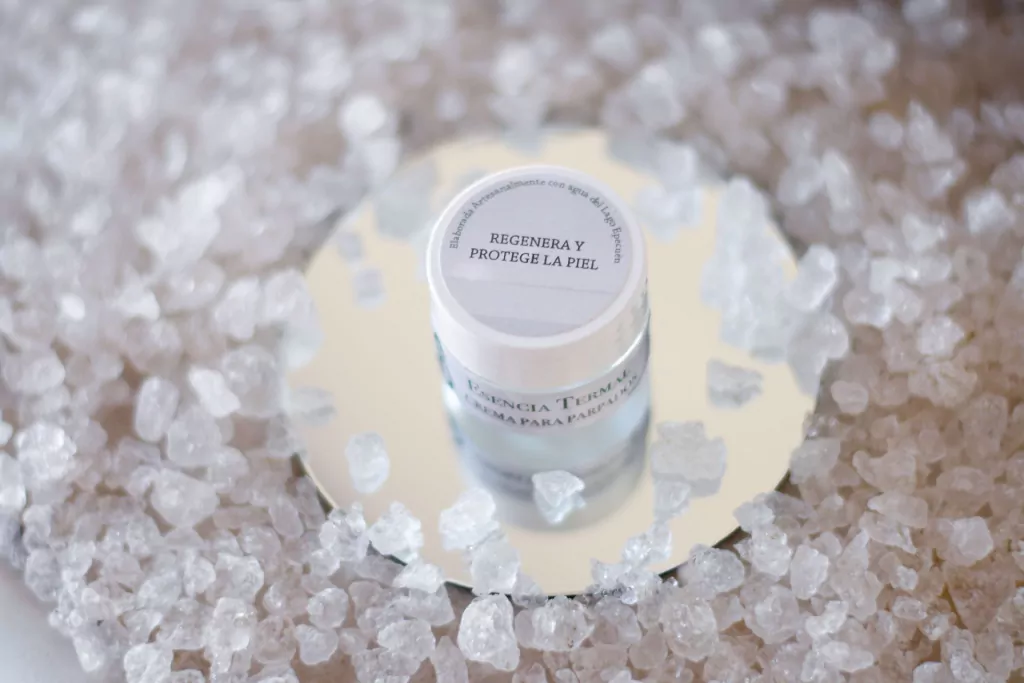 Esta compuesta por agua termal del Lago Epecuén y aceites vegetales. No posee fragancias ni parabenos.